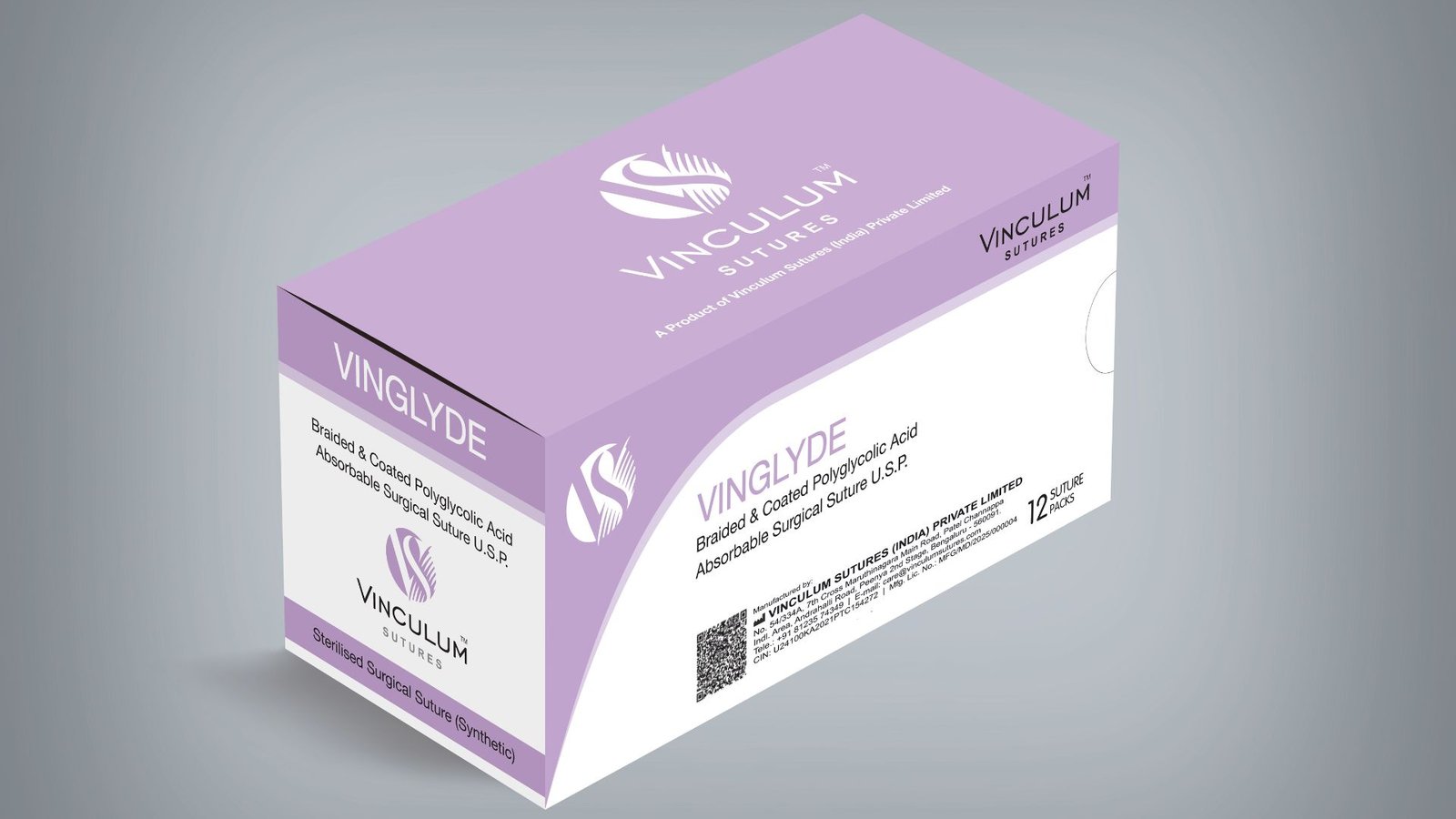 VINGLYDE – Braided & Coated Polyglycolic Acid Suture is an absorbable, sterile, synthetic surgical suture, composed of homopolymers of Glycolide (100%). VINGLYDE is also available undyed. Braided & Coated Polyglycolic Acid Suture meets all the requirements as per United States Pharmacopeia for Absorbable Surgical suture (Synthetic)