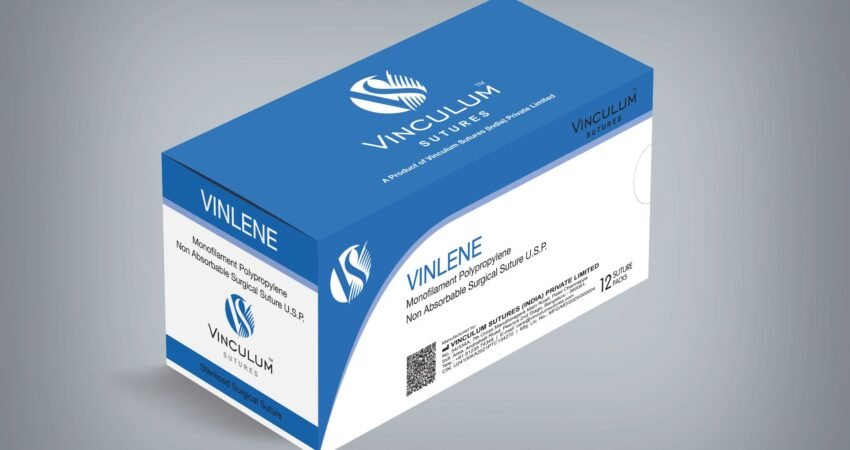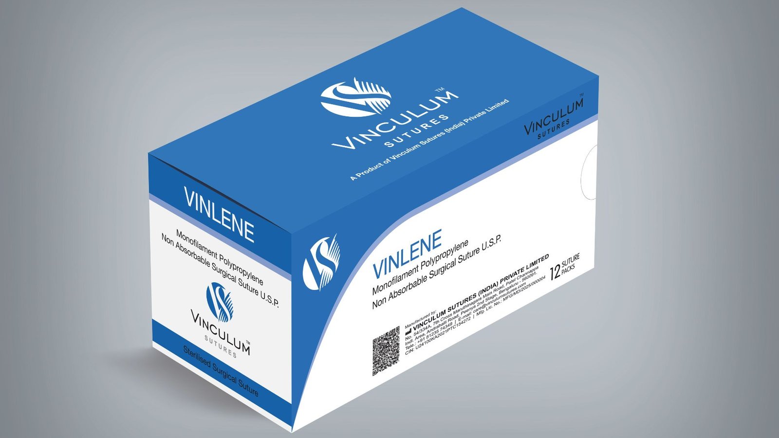 VINLENE – Monofilament Polypropylene Suture is a non absorbable sterile surgical suture composed of an isotactic crystalline stereoisomer of polypropylene, a synthetic linear polyolefin. The suture is pigmented blue to enhance visibility.